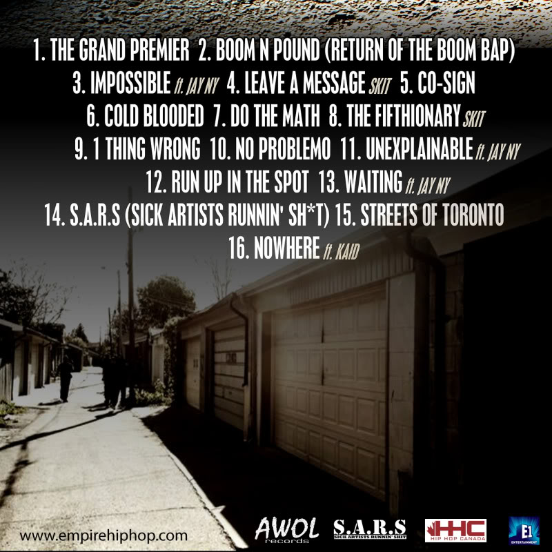 Toronto’s own Empire, also known as the legendary Fifth Letter Fam, has graduated from detention to writing 101. With incomparable lyrical skill and wit, these artists speak from the heart on behalf of the Adam Bomb, Scandalis, The Rhyme Animal, Talksick, Mezziah and Tek Man have gained an undisputable reputation for representing real hip hop. They skillfully tell the stories of anyone that has been through struggle, and overcome adversity just to make the grade. The Fifth Letter Fam works diligently to bring exposure to themselves and countless local artists, with the SA.R.S.(Sick Artist Runnin Sh*t) mixtape series. Empire decided to flip one of the city’s worst tragedies into a positive movement which represents the pride they hold for Toronto and the importance of the highlighting the city’s positive attributes.