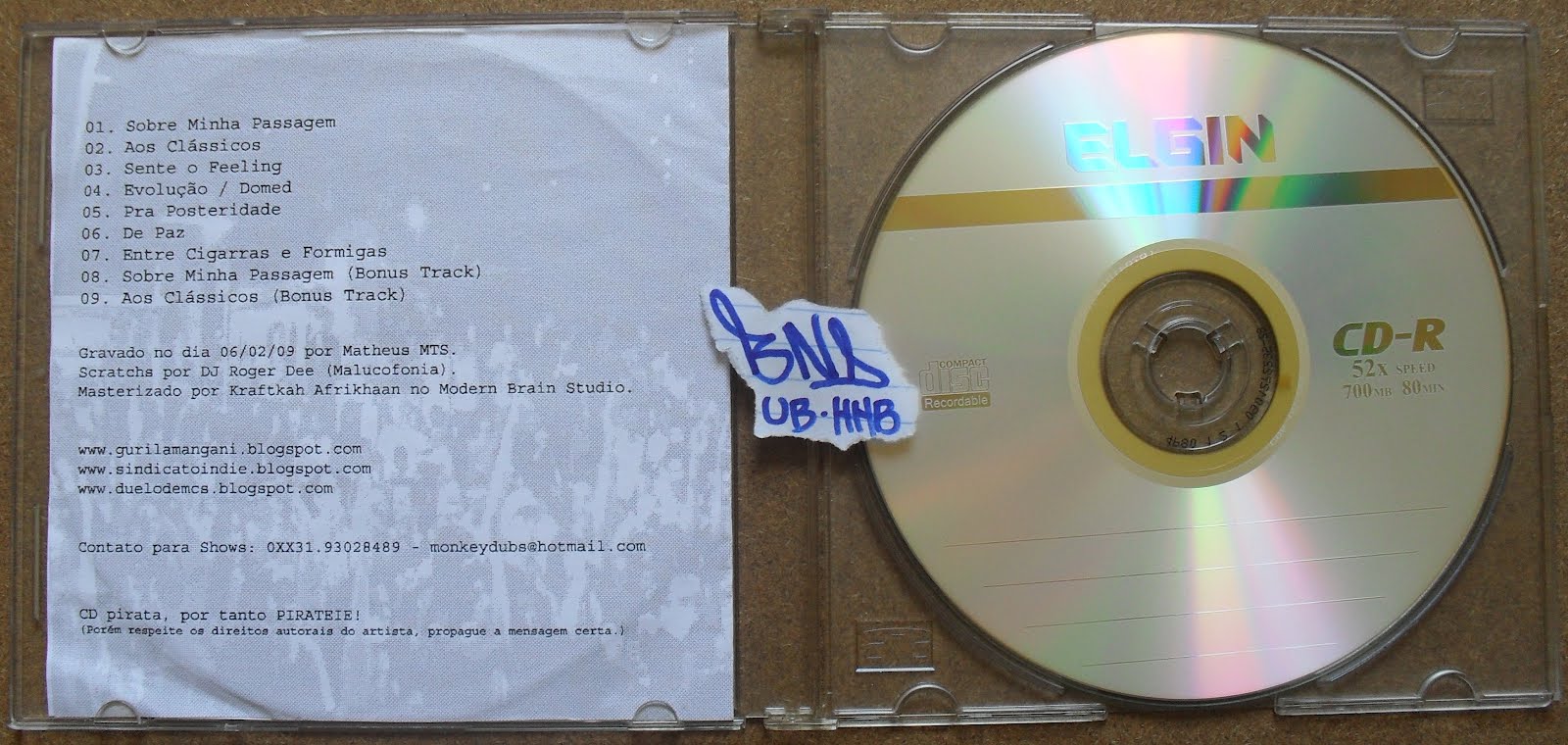 em Belo Horizonte no dia 6/2/09. Contem 9 faixas, 7 delas gravas